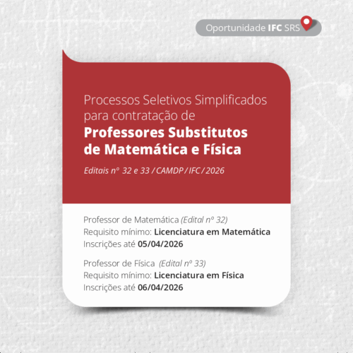 IFC abre processos seletivos simplificados para a contratação de professores […]