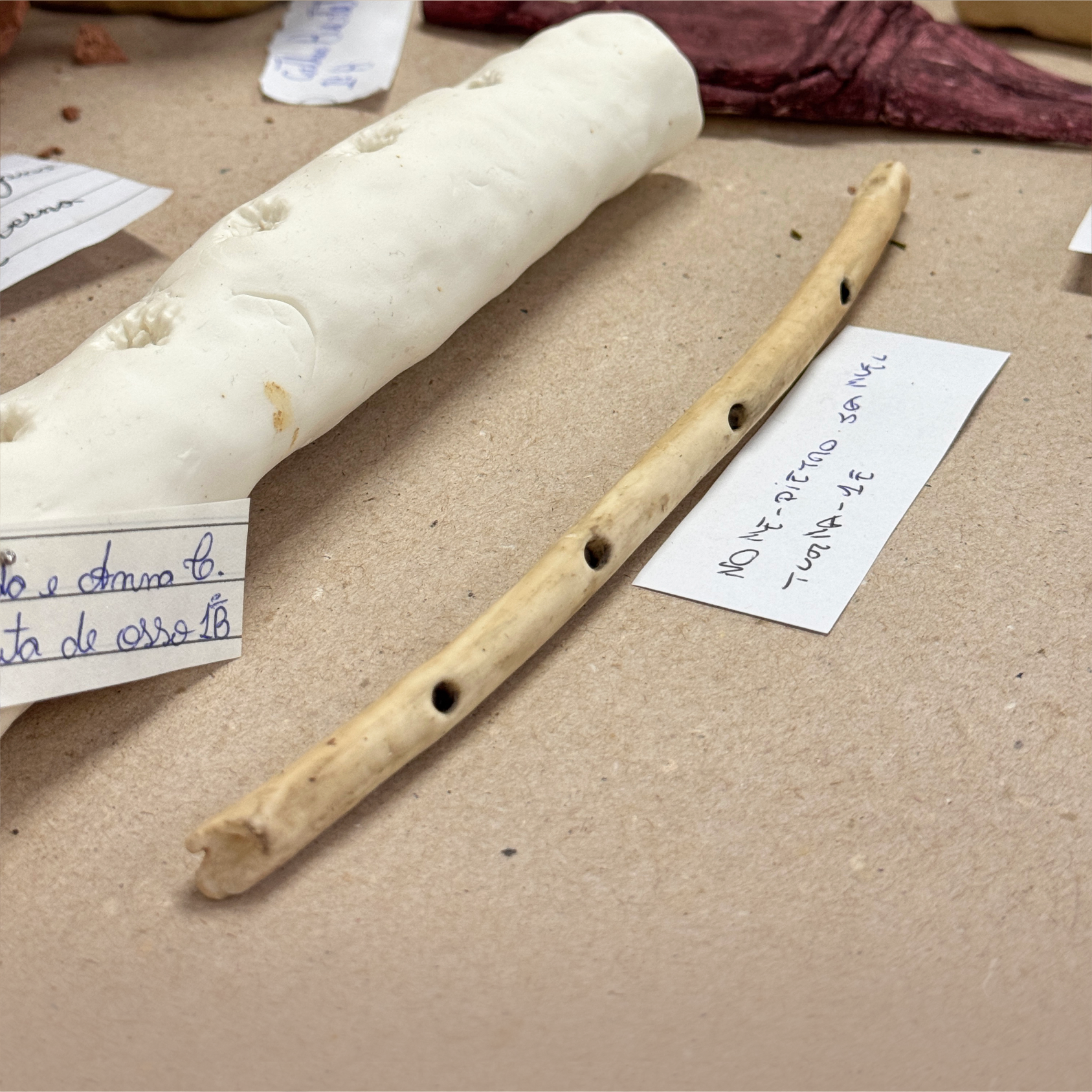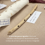 Os alunos foram incentivados a reconstruir o objeto artístico pesquisado utilizando, preferencialmente, materiais naturais, como argila, pigmentos de plantas, madeira e carvão.