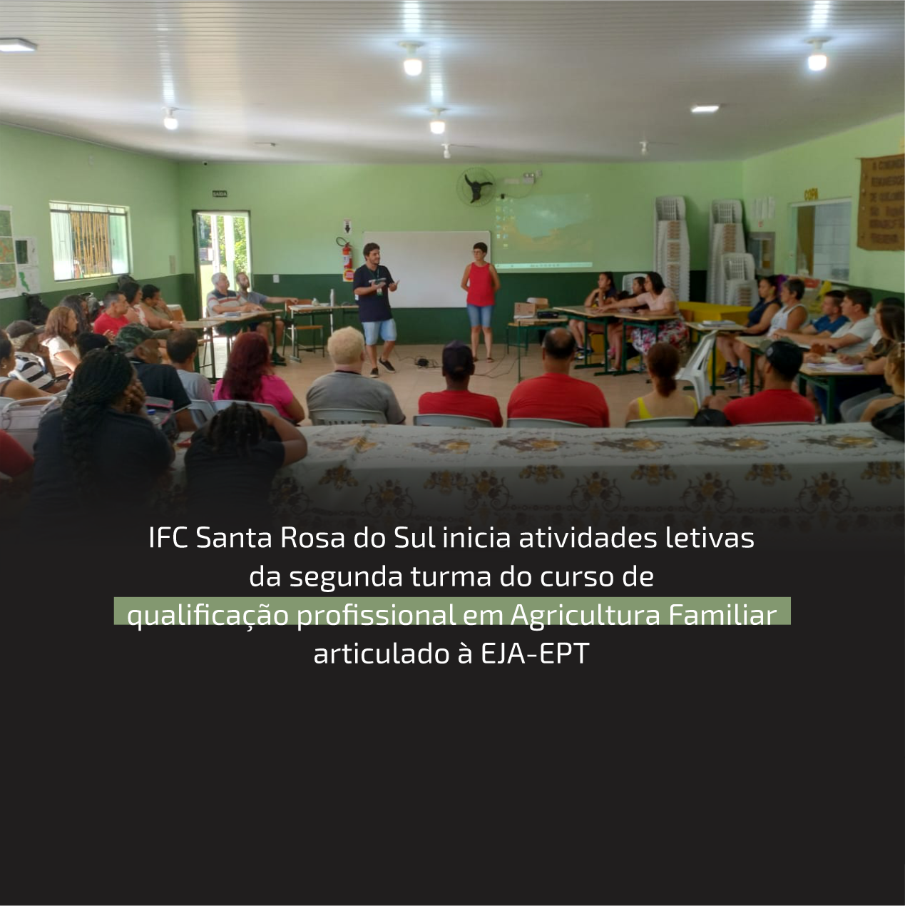 Em dezembro de 2023, o IFC Santa Rosa do Sul formou 20 profissionais em Agricultura Familiar pelo mesmo programa. Mais informações sobre o curso estão disponíveis em ejaept.santarosadosul.ifc.edu.br.